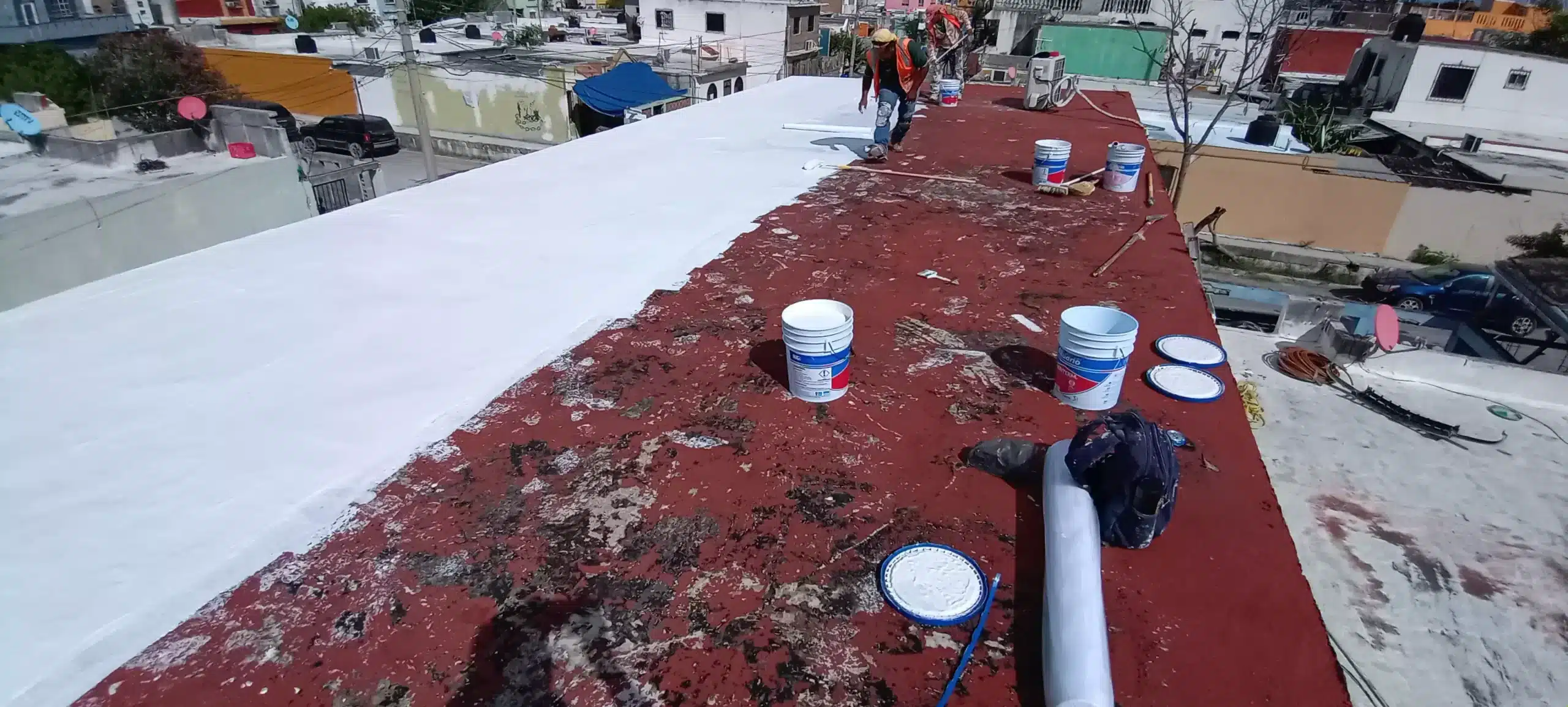 Impermeabilizante acrilico color blanco y rojo terracota